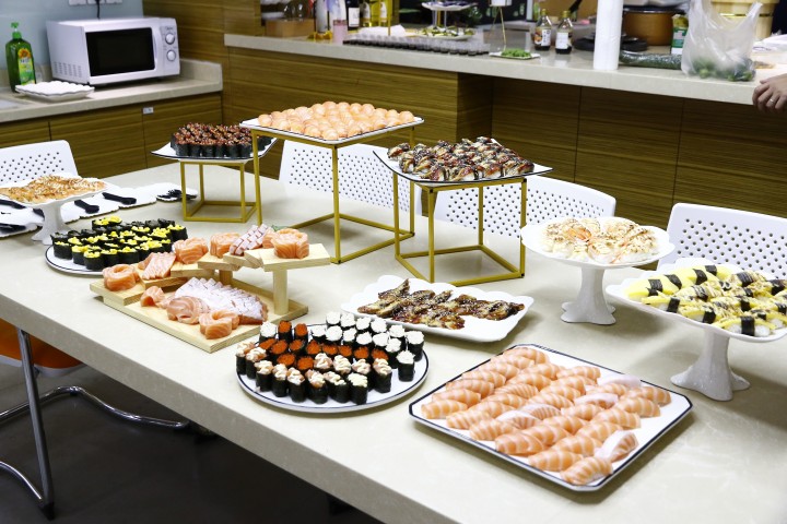 久違的(de)下(xià)午茶,企管中心的(de)小(xiǎo)姐(jiě)姐(jiě)們請(qǐng)來(lái)了(le)壽司團隊現(xiàn)場(chǎng)制(zhì)作(zuò)新鮮美(↑měi)味的(de)壽司刺身(shēn),