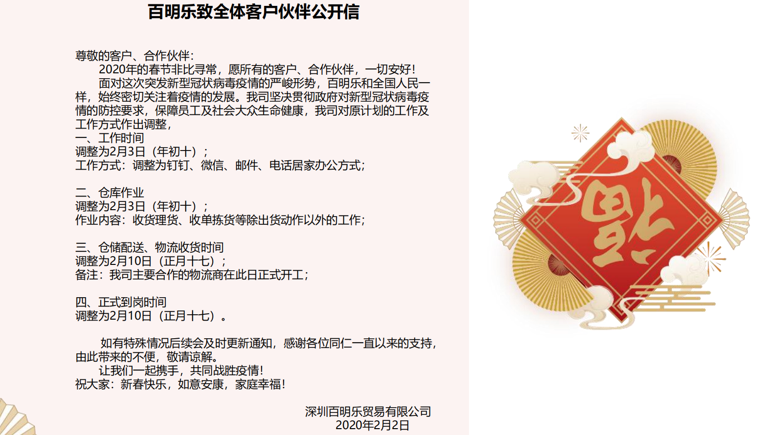 百明(míng)樂(yuè)緻全體(tǐ)客戶夥伴公開(kāi)信