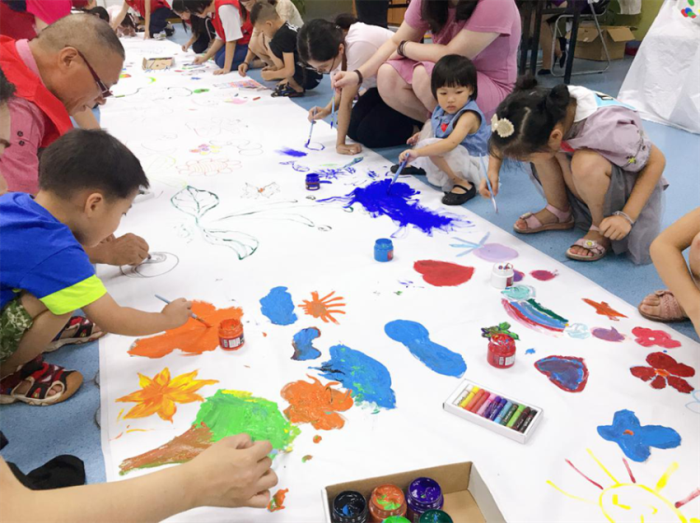 有(yǒu)的(de)跟著(zhe)工(gōng)作(zuò)人(rén)員(yuán)與爸(bà)爸(bà)媽(mā)媽(mā)的(de)指引來(lái)繪畫(huà)......