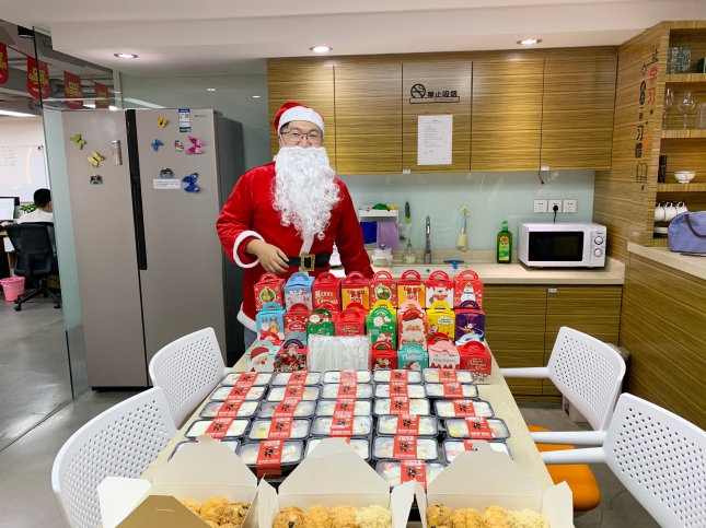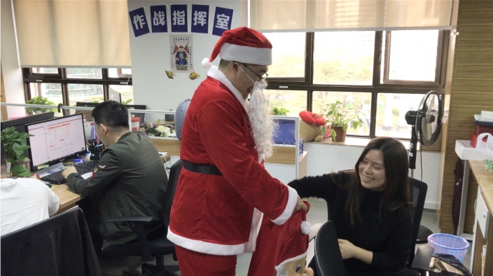公司為(wèi)大(dà)家(jiā)“請(qǐng)”來(lái)了(le)有(yǒu)著(zhe)紅(hóng)帽子(zǐ)和(hé)φ大(dà)胡子(zǐ)的(de)“聖誕老(lǎo)人(rén)”